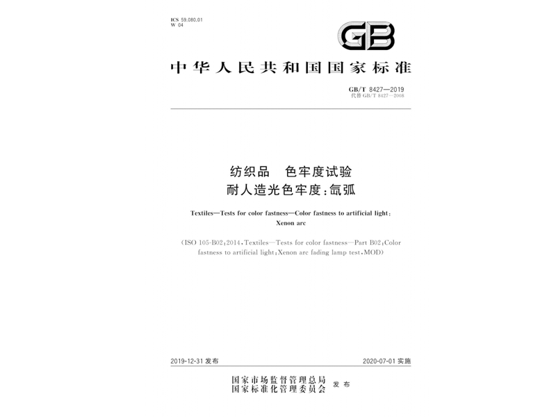 參與起草《紡織品 色牢度試驗 耐人造光色牢度:氙弧》(GB/T 8427-2019),該標(biāo)準(zhǔn)由國家市場監(jiān)督管理總局、國家標(biāo)準(zhǔn)化管理委員會于 2019-12-31 發(fā)布